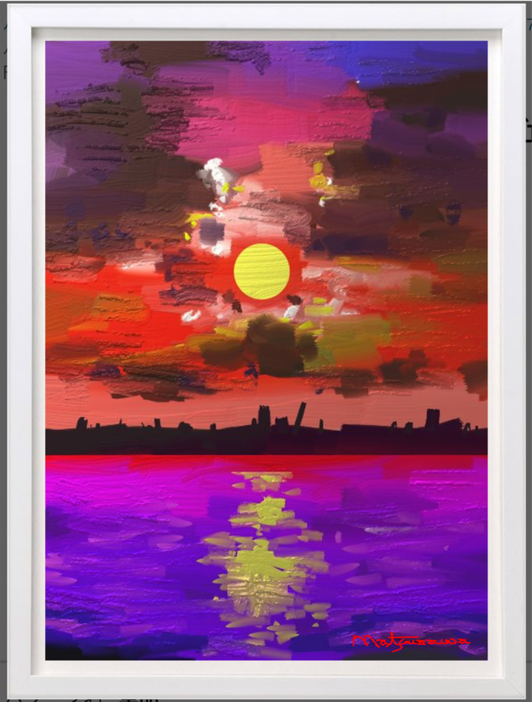 ROOM-4-No.3 タイトル : 「工業団地の夕日」 サイズ : 500x700px PCマウスだけで描きました ツール : ArtRage キャプション 会社での仕事の帰り道で見た工業団地の夕焼けの光景で、一日が終わってのご褒美として癒しになる”お疲れ様”を表現した一枚。 メッセージ ・体を大切にする・ケア お疲れ様です。太陽はあなたの頑張る姿をずっと見ていました。風景は、癒しとしてあなたに与えられました。今日もあなたが良い眠りにつけますように。