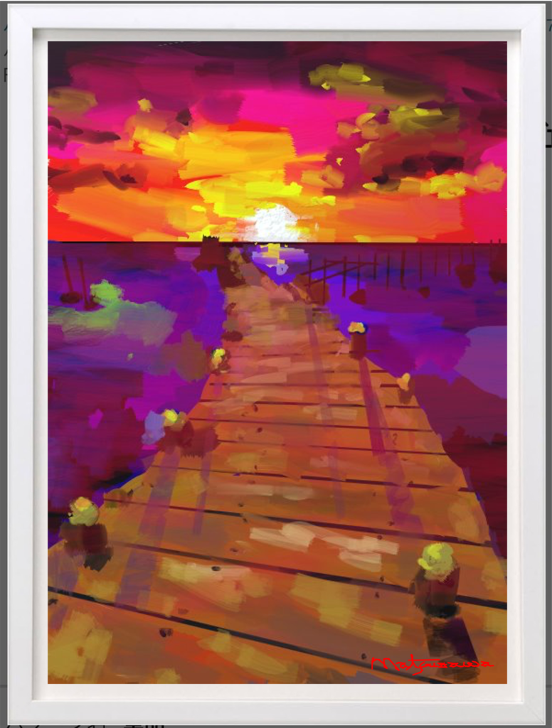桟橋の雰囲気をマウスを使ってArtRageツールを使いこなして表現できるかに挑戦した一枚。夕陽に向かって伸びていく桟橋が明日への滑走路に見えてこのタイトルにした。
